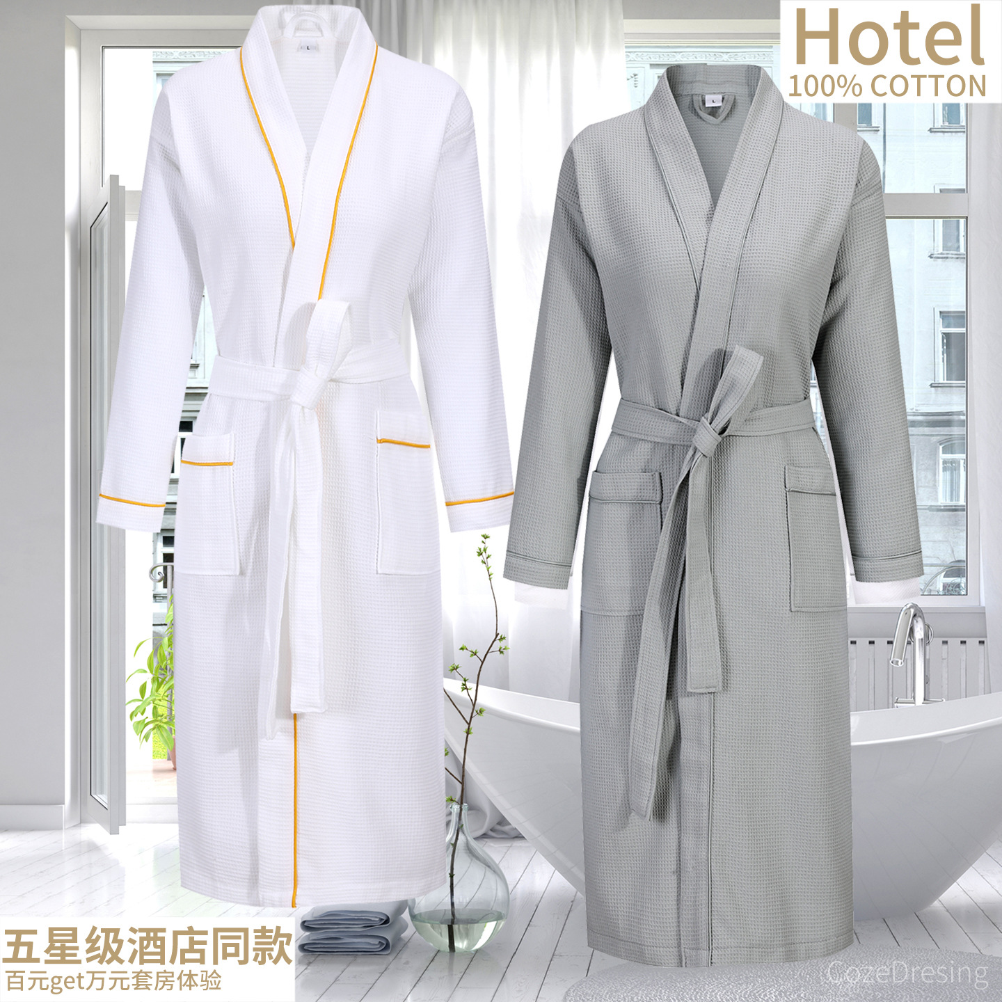 五つ星ホテル夏薄い純綿ワッフルカップルバスローブ女性用ミドル丈吸水速乾男性用大きいサイズナイトガウン