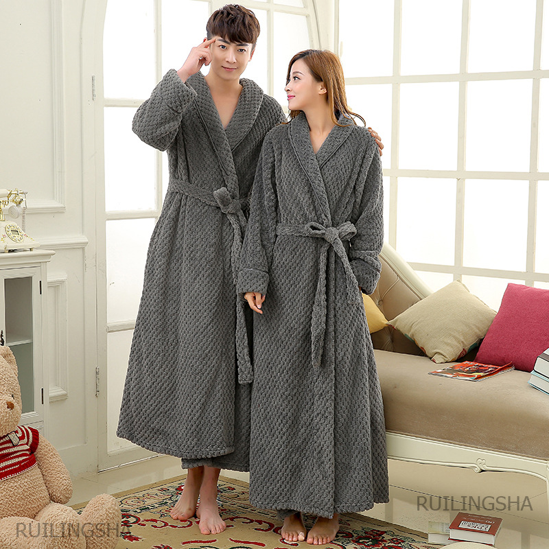 カップルの秋と冬厚く暖かいロングフランネルナイトガウン女性のコーラルベルベットバスローブ男性のパジャマ大きいサイズのホーム服