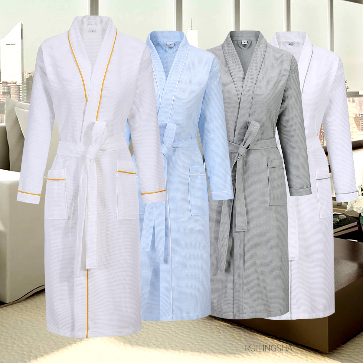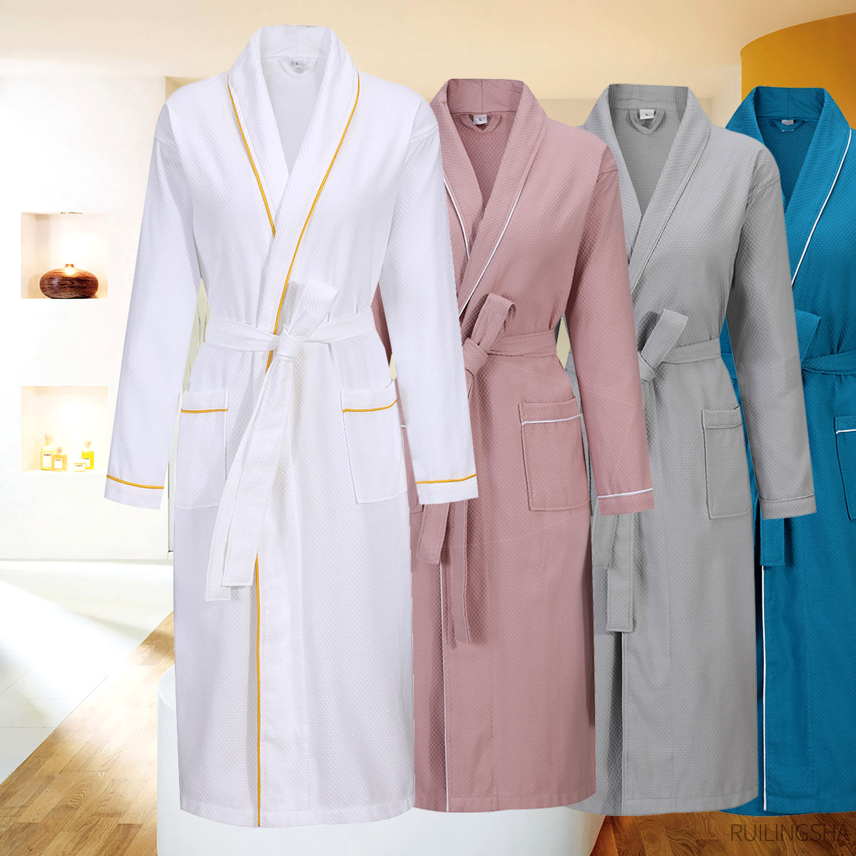 カップルの夏用薄手の純綿ワッフルバスローブ、女性用エステサロンバスローブ、男性用大きいサイズホームウェア、ホテル用ナイトガウン
