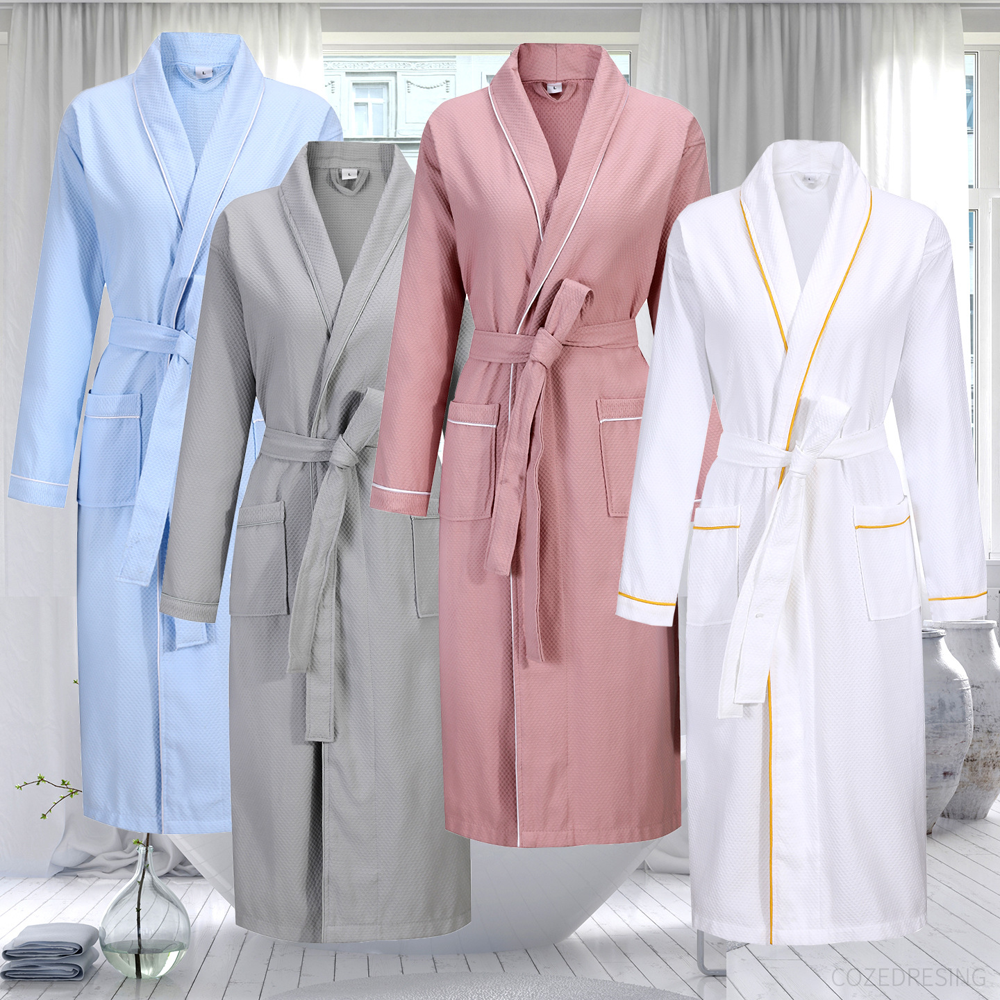 カップル向け夏用薄手綿ワッフルバスローブ、女性用ロング丈吸水速乾バスローブ、男性用ホテルナイトガウン、涼感