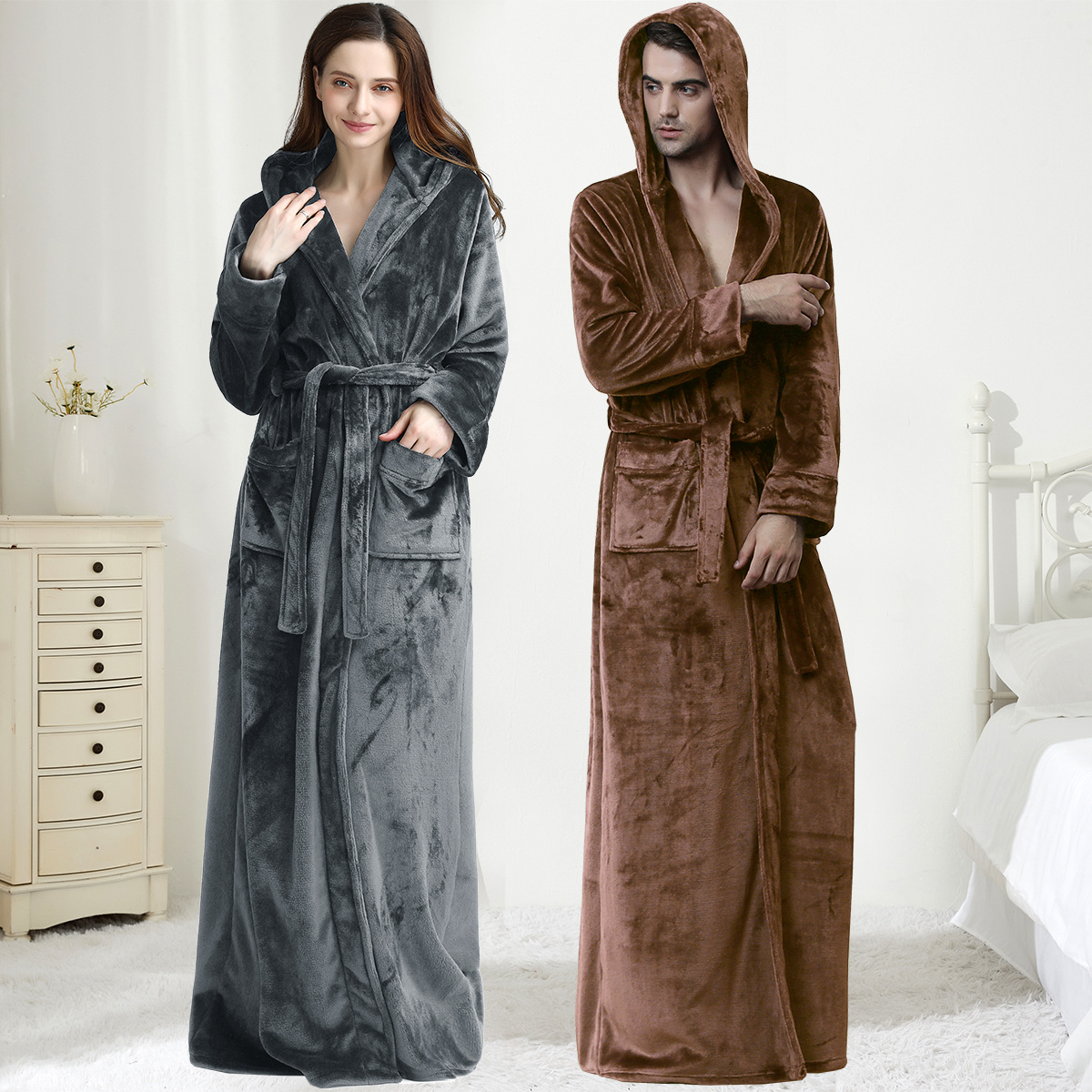カップル秋と冬のフード付き暖かいフランネルナイトガウン女性の厚いロングメンズコーラルベルベット大きいサイズのバスローブパジャマ