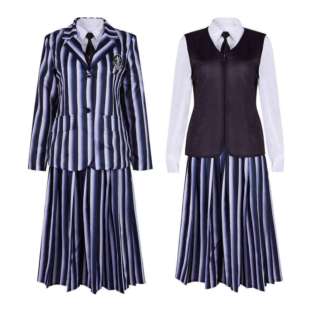 アダムスファミリー水曜日コスプレ衣装アダムスストライプ学生服コスプレハロウィンパフォーマンス衣装