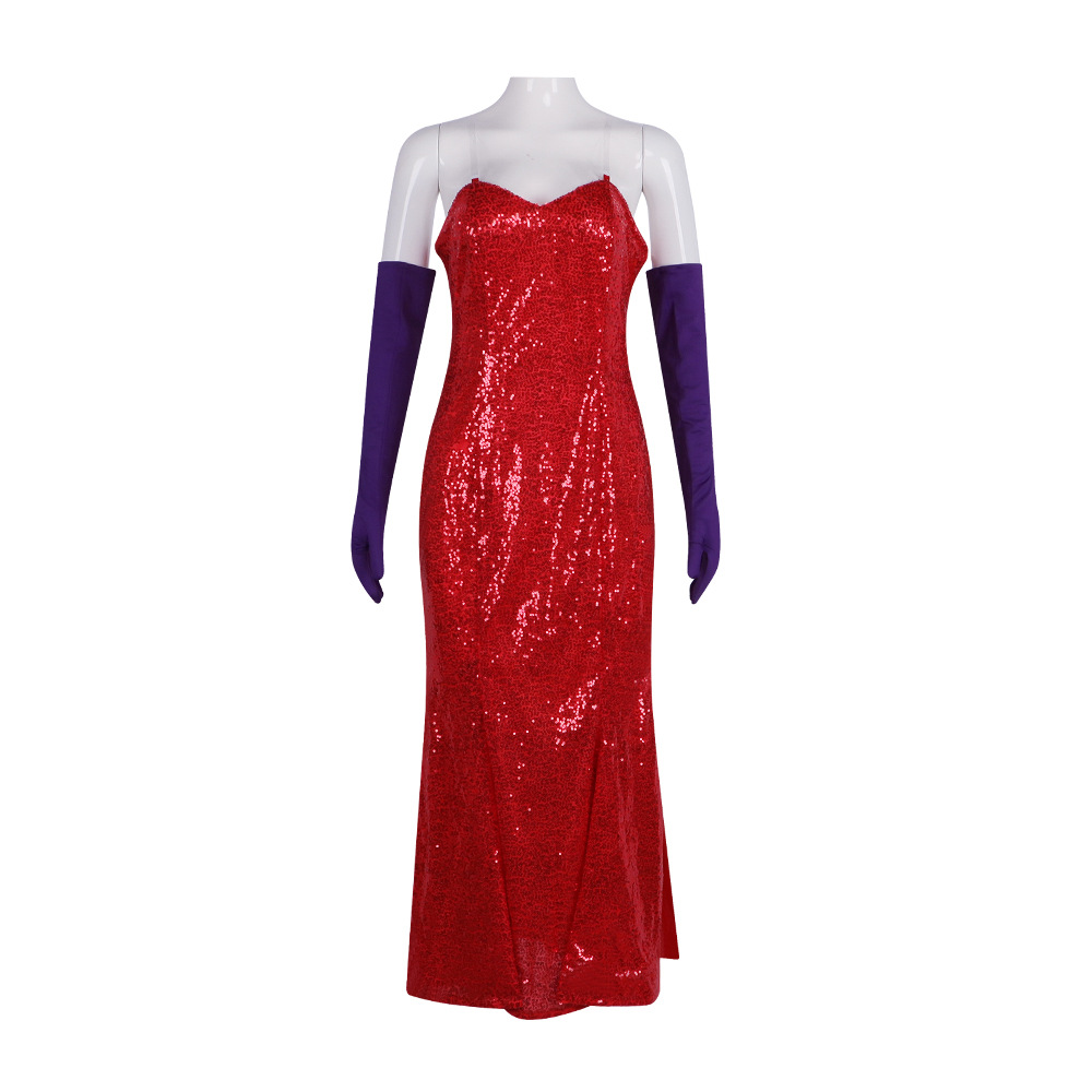 ホット映画誰がウサギロジャーを陥れたのか cos 衣装ジェシカレッドドレスパーティードレスコスプレハロウィン