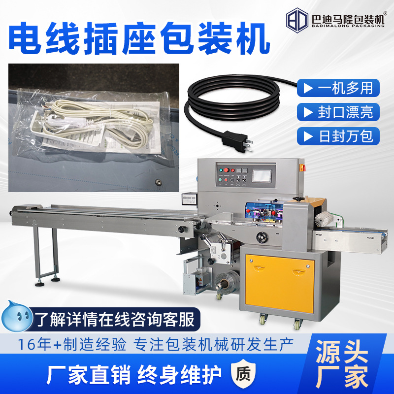 電線ソケット包装機、電源タップ、充電器自動袋詰め機、スイッチパネル枕包装機