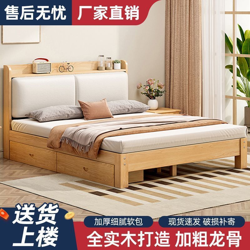 実木ベッド1.5メートル家庭用ソフトベッド現代シンプル経済型1メートルシングルベッド1.8メートル主臥ツインベッド