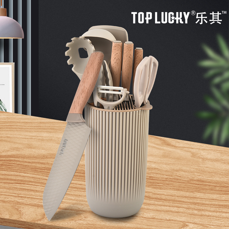 陽江楽其の包丁8点セット刃物セット回転アクリル刃座刀切セット木柄包丁