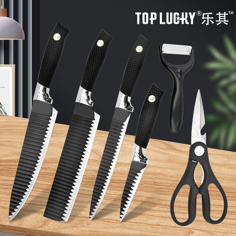 越境電商刃物セット六点セット厨房家庭用包丁黒包丁セットまな板まな板