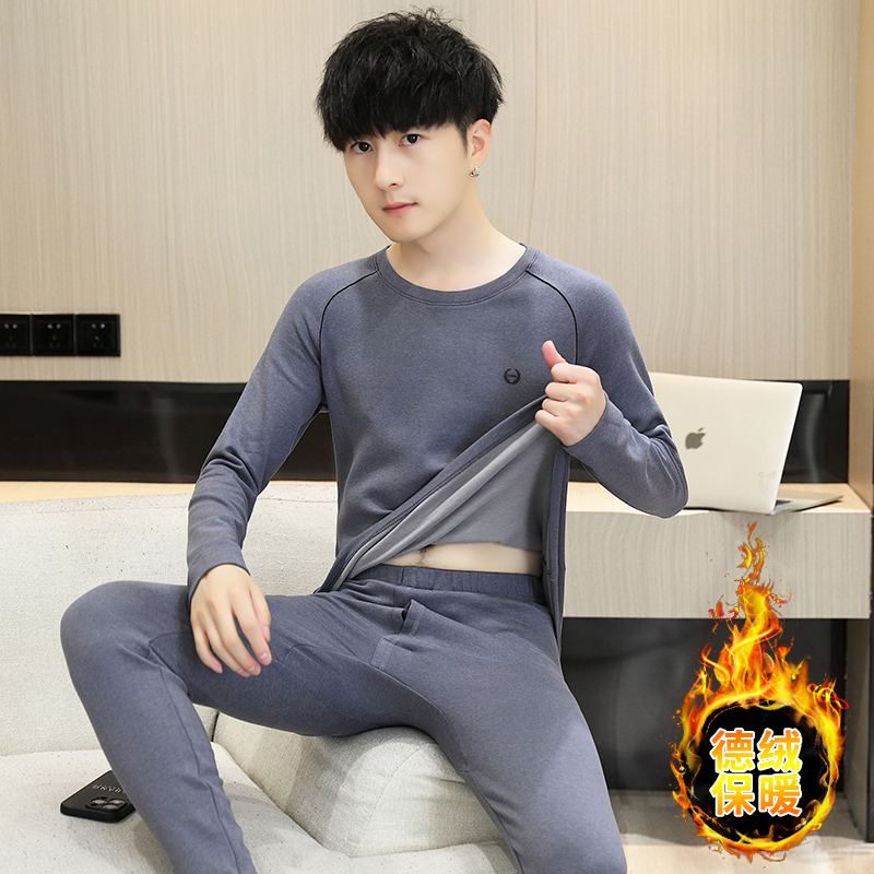 徳絨毛保温下着男性2024新型高校学生のシャツ青少年秋衣秋ズボンセット男性タイプ