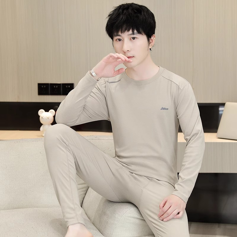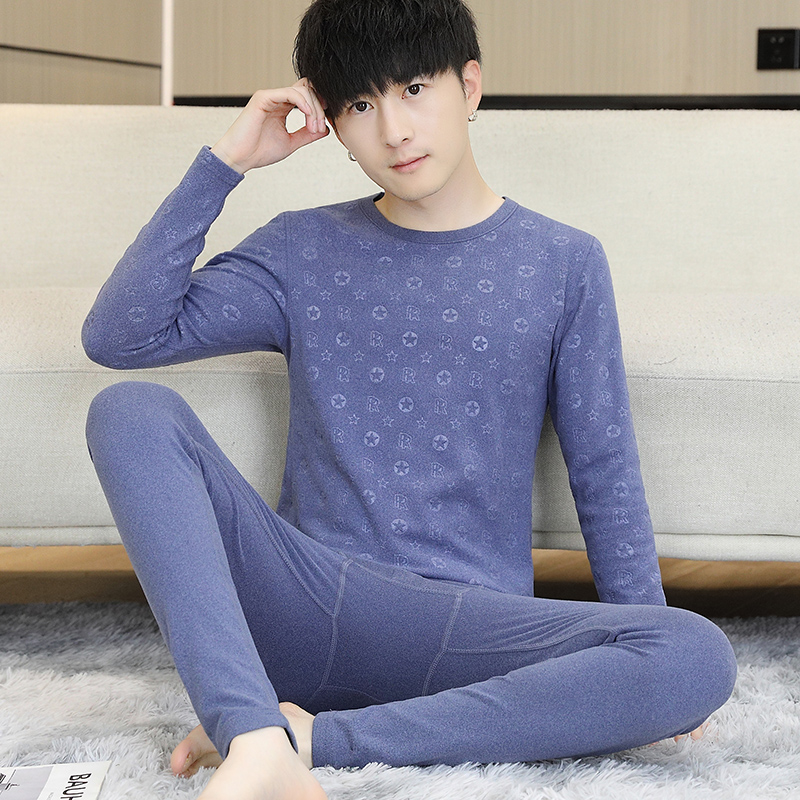 不起球徳容保温下着男性秋衣秋ズボン自己発熱抗菌薄手青少年大学生スーツ