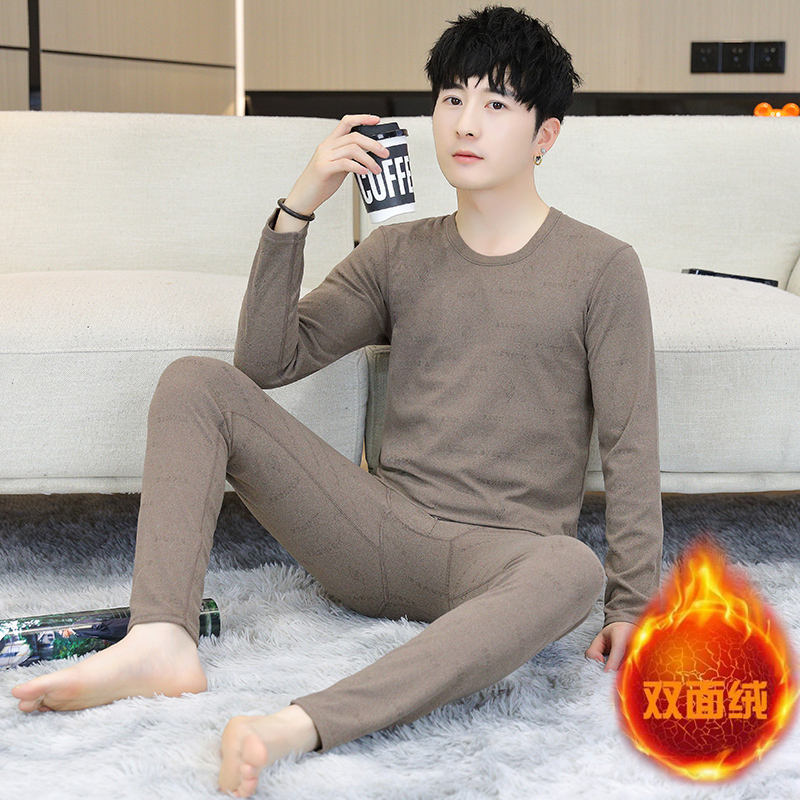 2024種類の両面徳絨毛保温下着男性青少年シャツシャツの厚い徳容秋衣秋ズボンセット