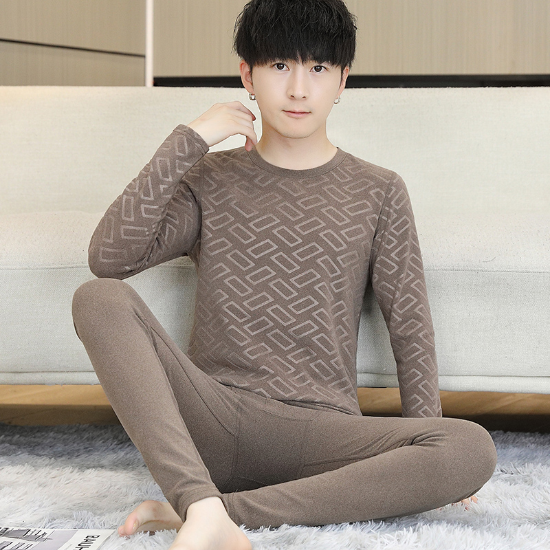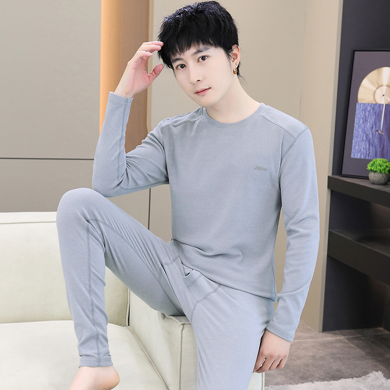 男性保温下着セットにベルベットをつけてシャツを着ている青年学生は冬に防寒して秋の服の秋のズボンを厚くする
