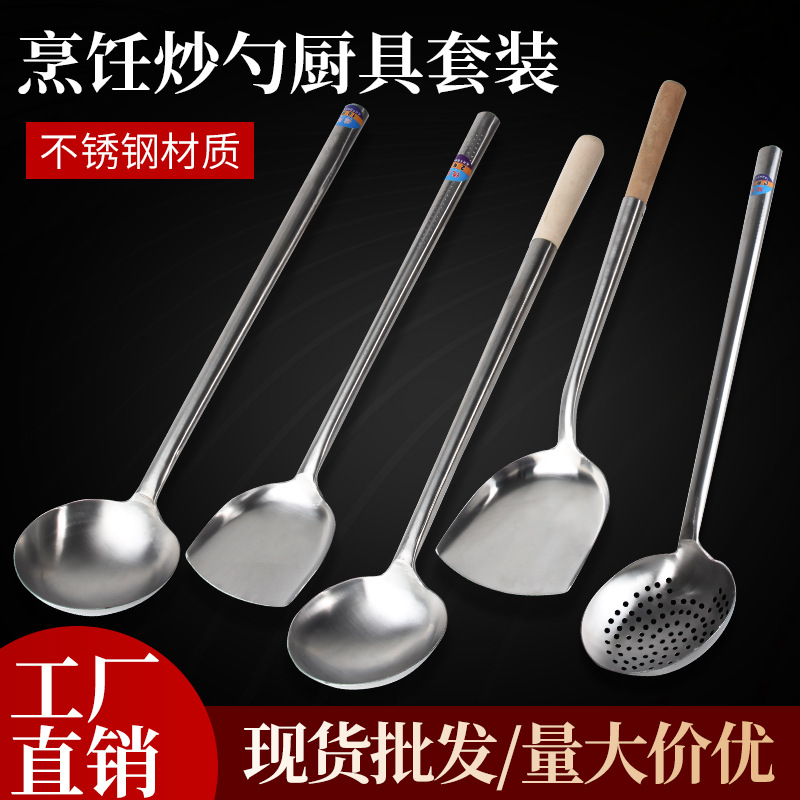 厚いステンレススプーン鍋スプーン鍋シャベル台所用品家庭用スープ殻木柄鋼柄ホテル料理人炒め料理