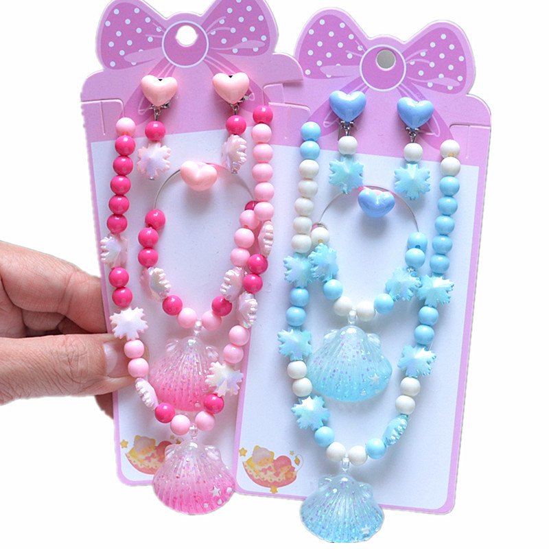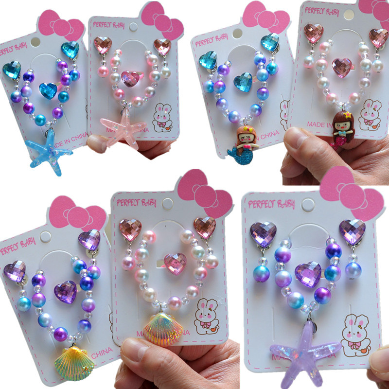 新しい子供のカラービーズのブレスレットの王女の漫画の人魚の貝殻の花のイヤリングのセットの小さい女の子のアクセサリー