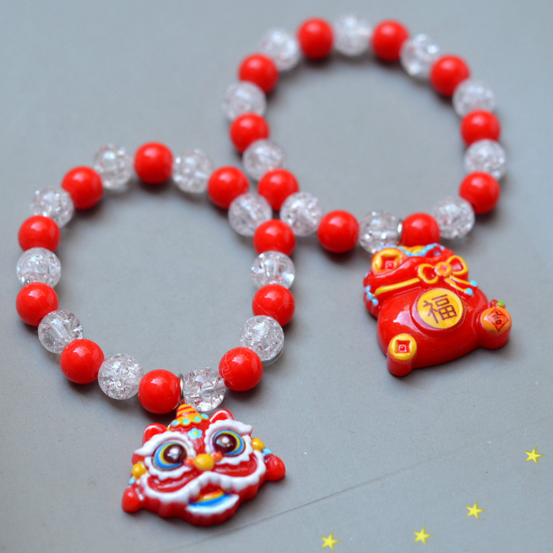 新年の髪飾り子供セット赤いお祝いの財神女宝ブレスレット漫画新年の髪飾り