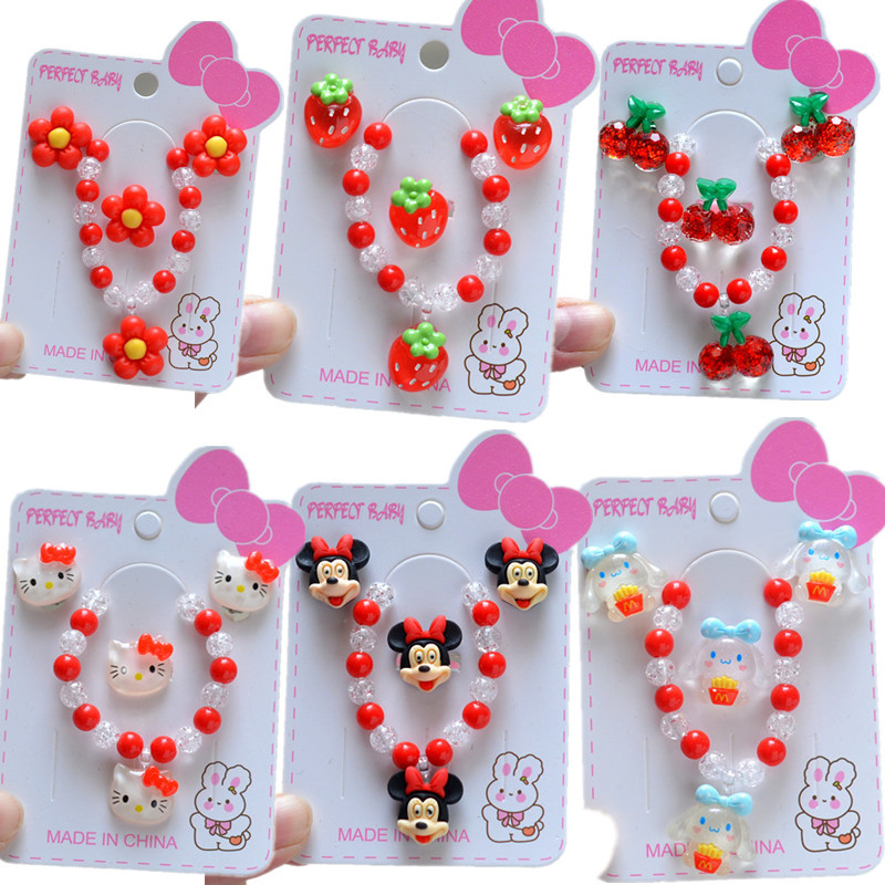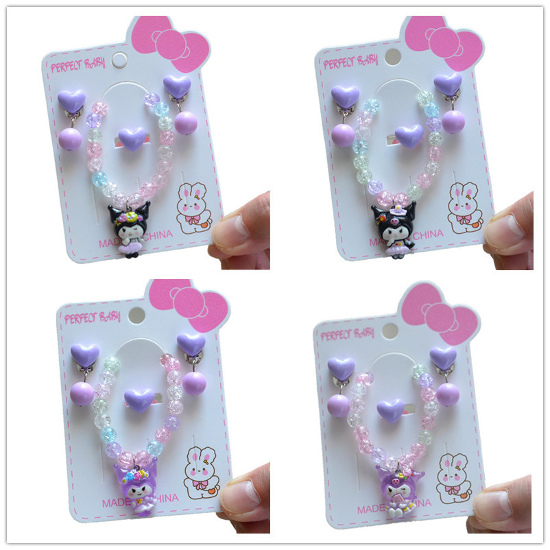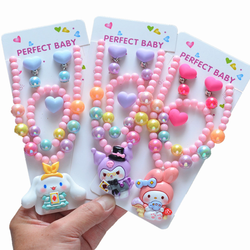 韓国の子供の真珠のネックレスのブレスレットのセットの大きいサイズのサンリオのネックレスの女の子の赤ちゃんは子供のネックレスのバッチを飾ります。