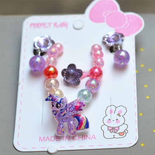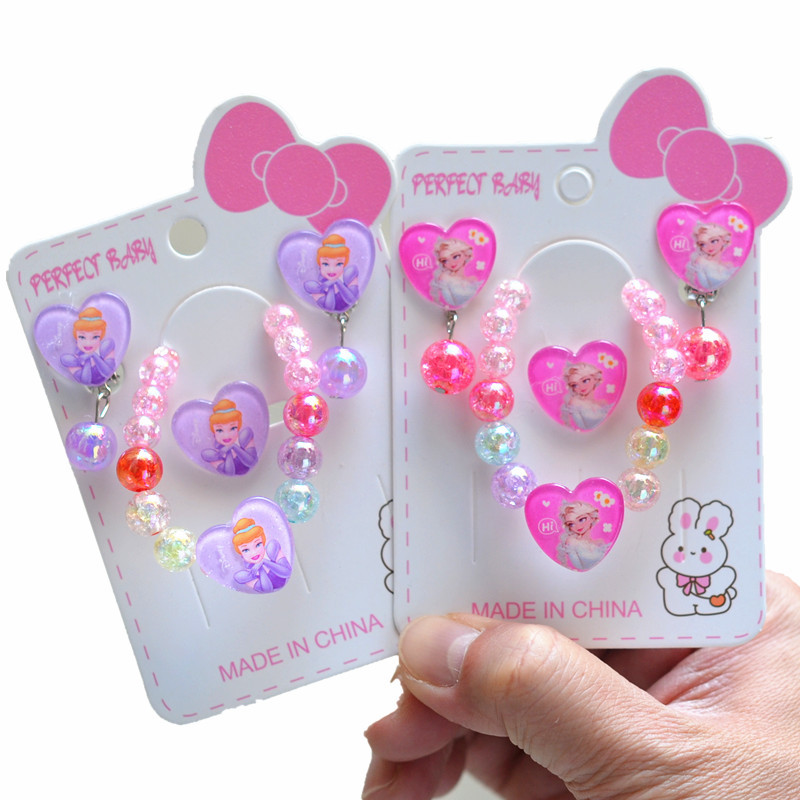 【四点セット】子供用ブレスレット耳クリップリングセットお姫様ブレスレット卸売り子供用アニメアクセサリー卸売り
