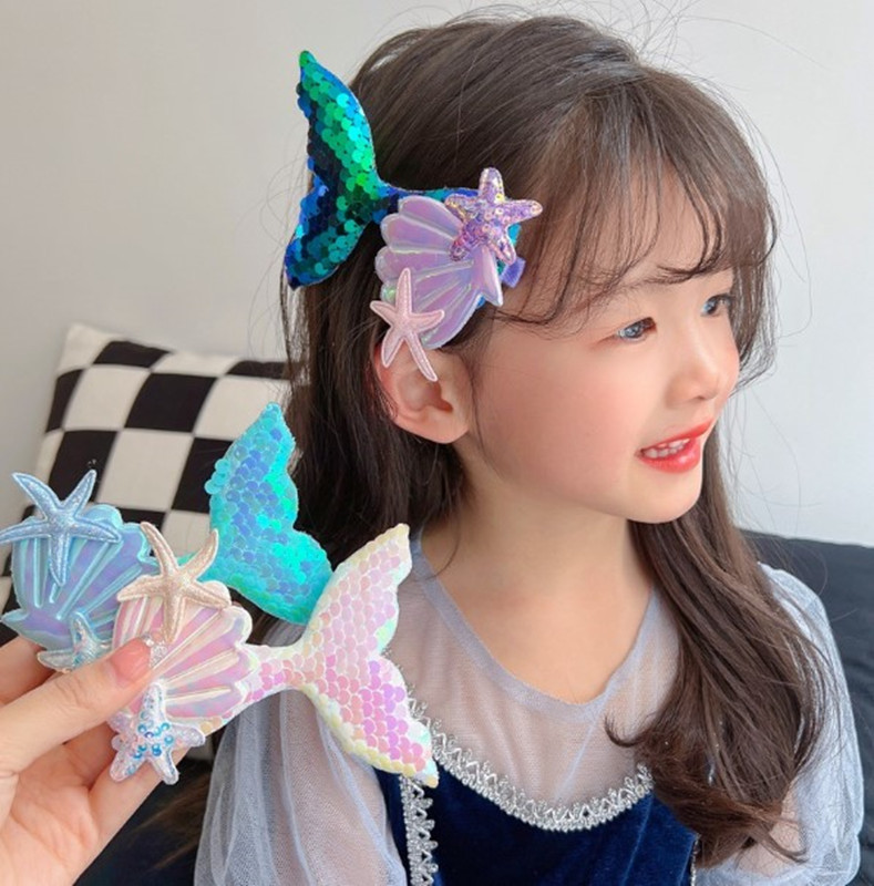 マーメイド子供ヘアクリッププリンセス髪飾りかわいい赤ちゃん海星貝殻ヘアバンド