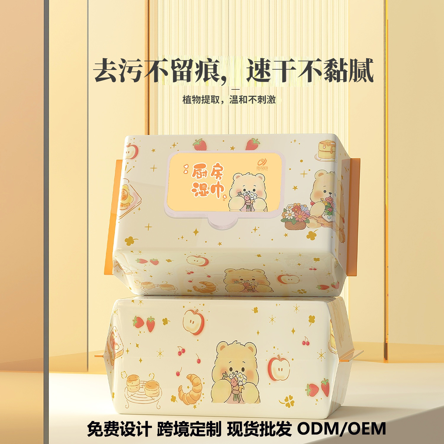 Lianhuayin キッチンクリーニングおよび脱脂ワイプ卸売 80 枚使い捨て大パック増粘家庭用強力除染