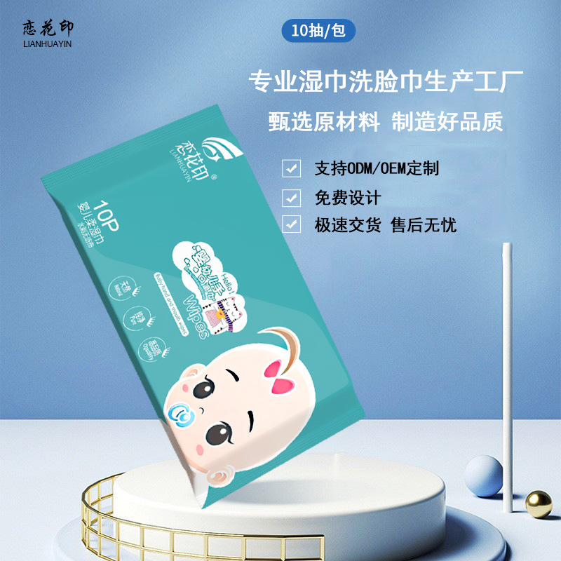 卸売り乳幼児の手の口の清潔なウェットティッシュの子供の使い捨ての赤ちゃんのウェットティッシュの小包は10枚を持ち歩いています。