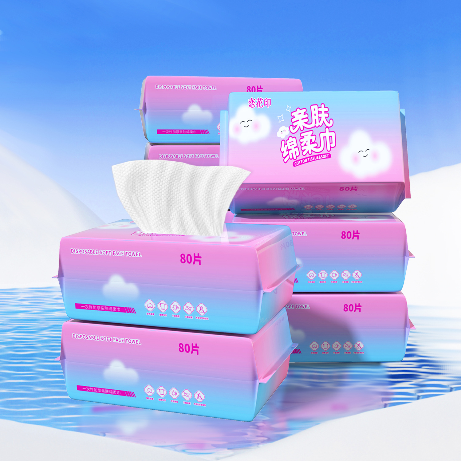 使い捨て純綿厚手大判洗顔タオル、引き出し式ベビーコットンソフトタオル80枚入り、エステサロン専用