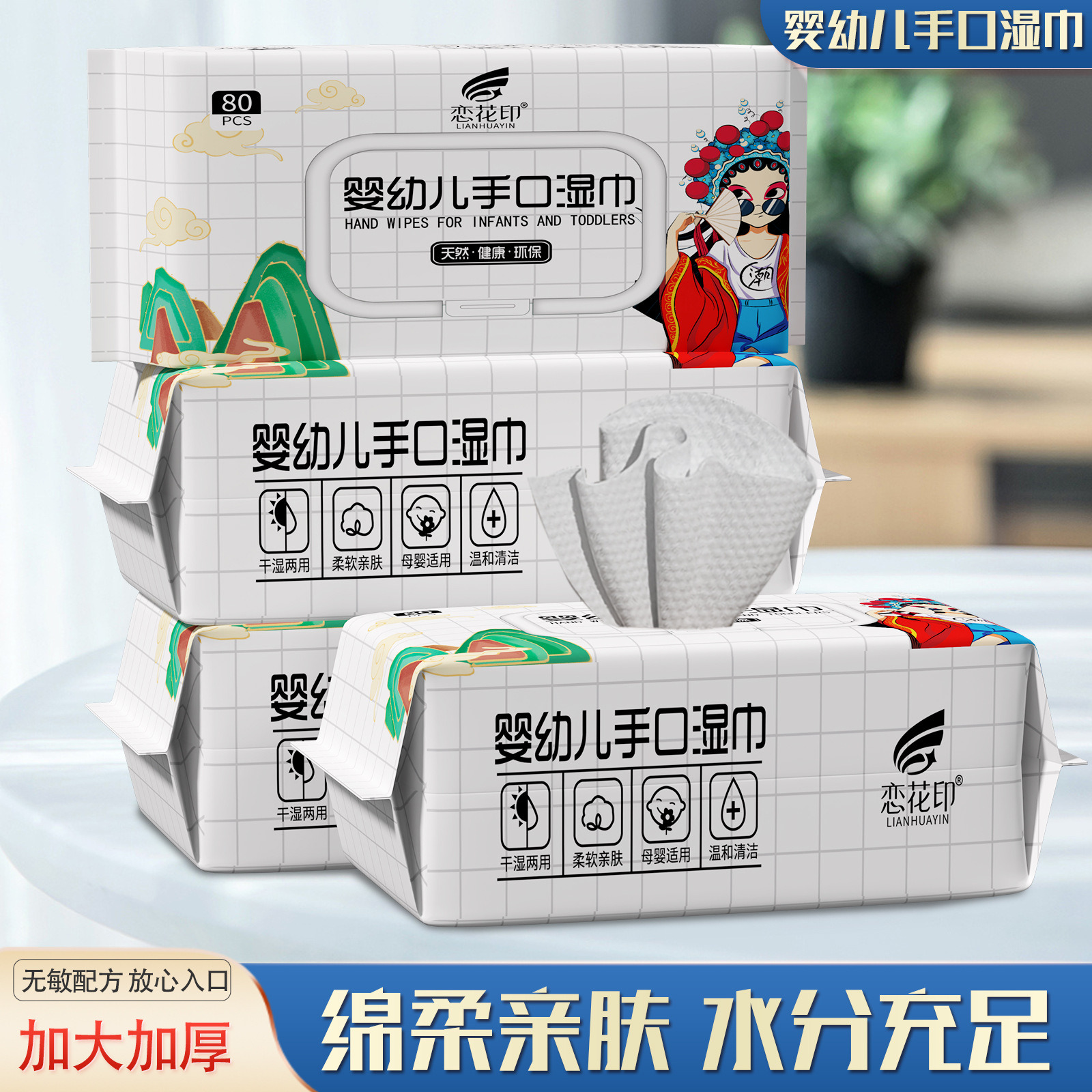 乳幼児用ウェットティッシュ80はウェットティッシュの使い捨ての厚いタイプの赤ちゃんの子供の手の口をきれいにしてウェットティッシュの卸売りを代行します。