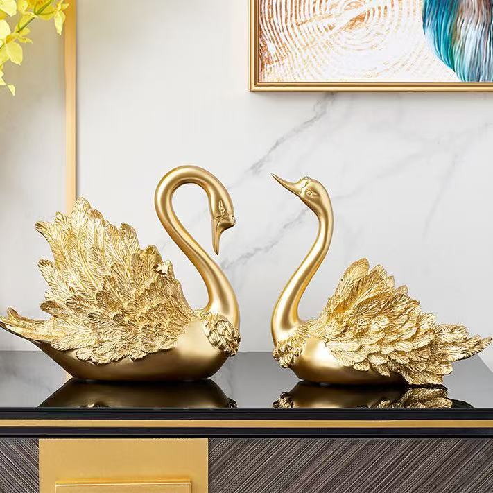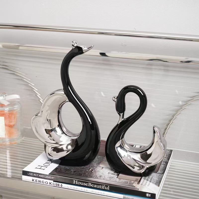 ヨーロッパ式モダンカップルブラックスワン工芸品リビングルーム収納置物高級スワンワインキャビネット装飾結婚プレゼント