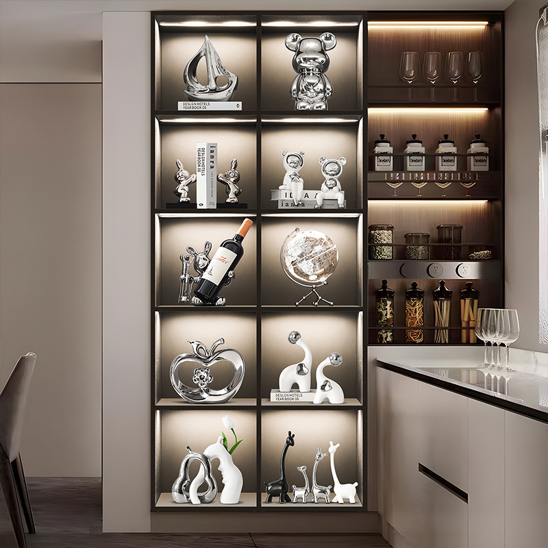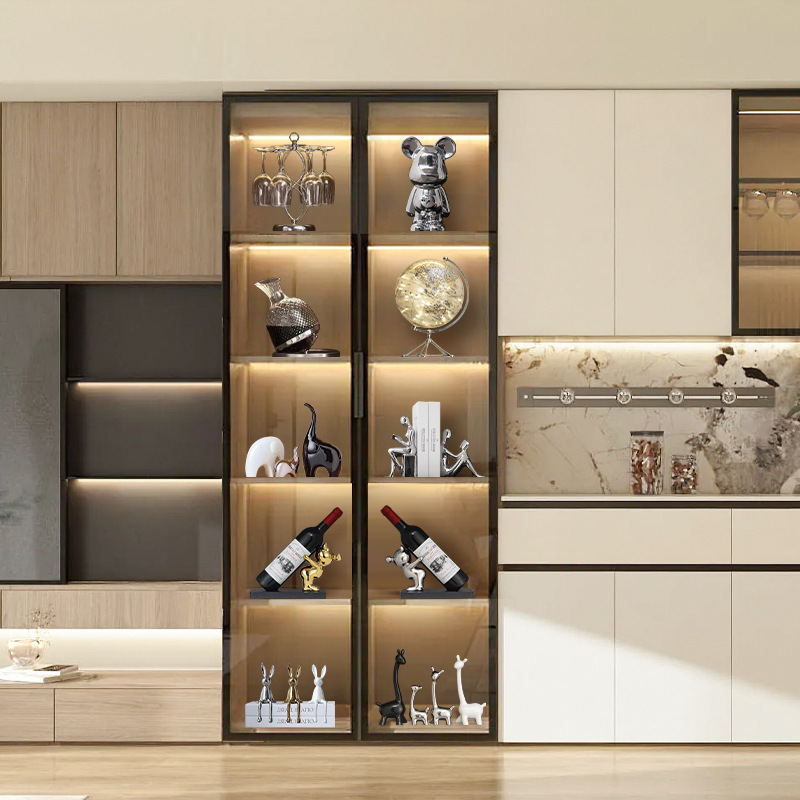 12格棚のガラス棚の装飾品の高級な大気の酒棚のテレビ棚のリビングルームの置物の家庭の軽い豪華な2025新型