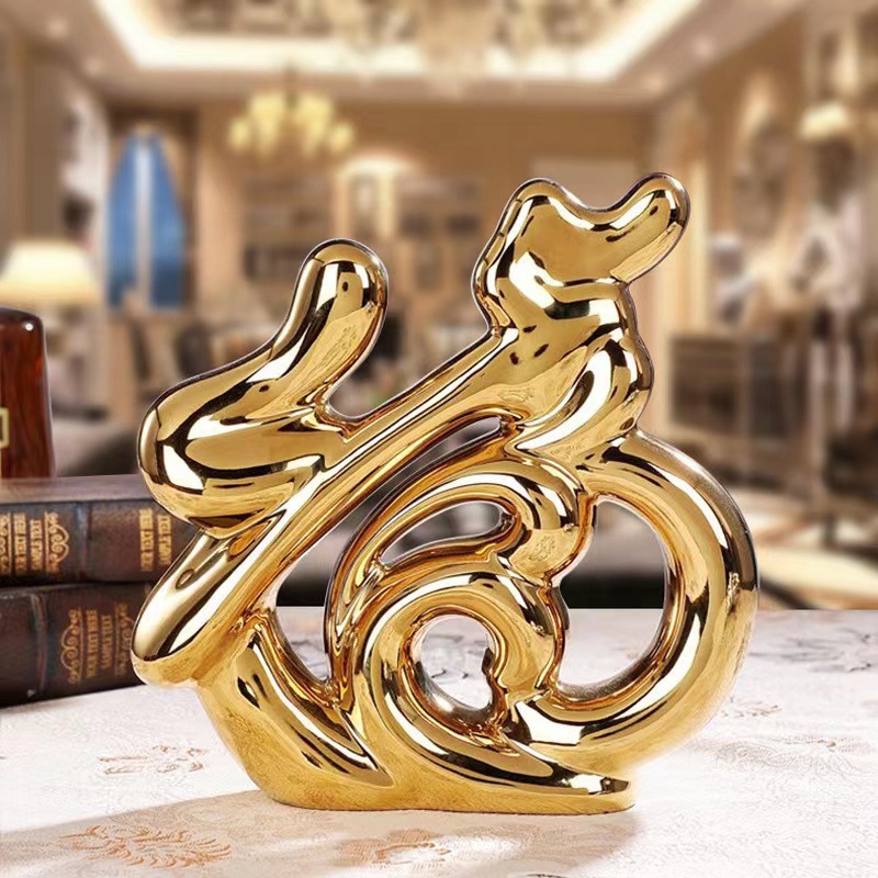 現代のシンプルな金銀の福の字の陶磁器の置物の家庭のアイデアの客間のテレビの棚の酒の棚の装飾品の工芸品