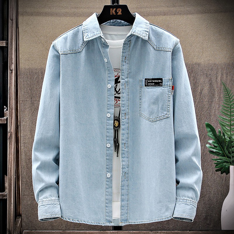 2024新作秋デニム長袖シャツ韓国版カジュアルプリントデニムシャツ薄いコート #0721