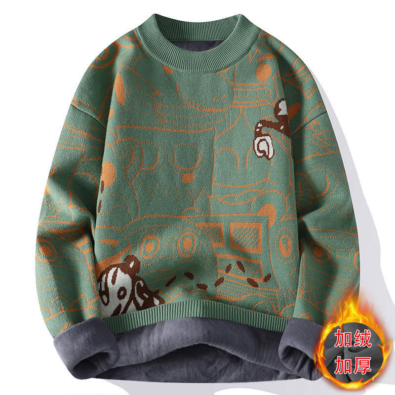 2024秋冬新作ベルベット厚手セーターニット男性ゆるい底1029