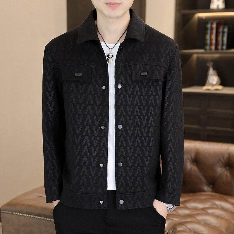 2024中年男性ジャケットゆるいカジュアル春秋服中高年お父さんコート単列ボタンナス0308