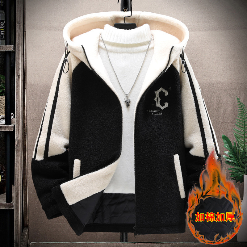2024秋冬モデル男性コートファッション綿服ファッションカジュアル粒パイルフード付き保温ジャケット1020