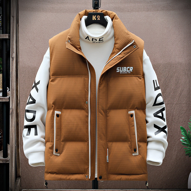 2024秋冬冬の馬甲綿服男性港風ゆるいカン肩袖なし綿服厚手コート-ストラップ1020