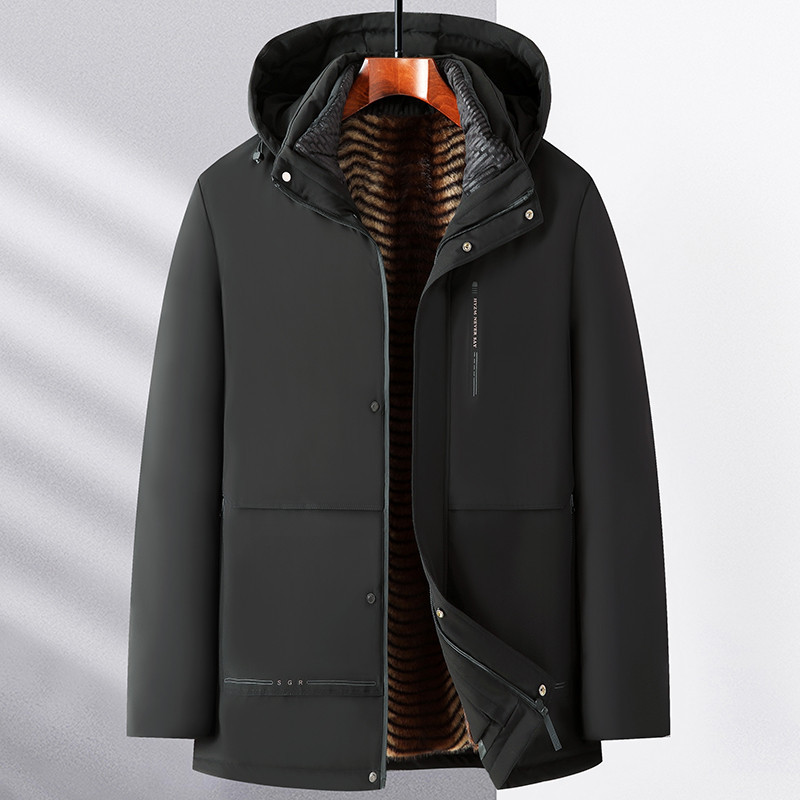 2024秋冬男性秋冬の新型ベルベットは帽子のトレンドが格好いい中長タイプの綿服コート1020を厚くした