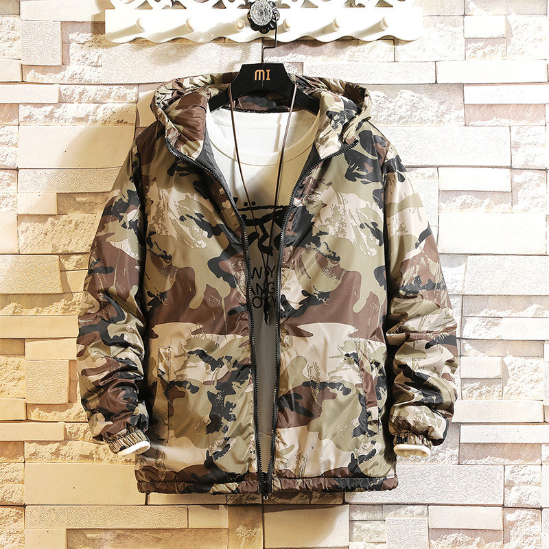 2024秋冬の秋冬の綿の服の男性の帽子の青少年の綿の服の厚い綿のジャケットの迷彩のコート1020