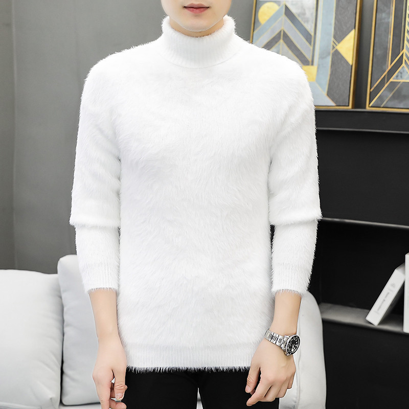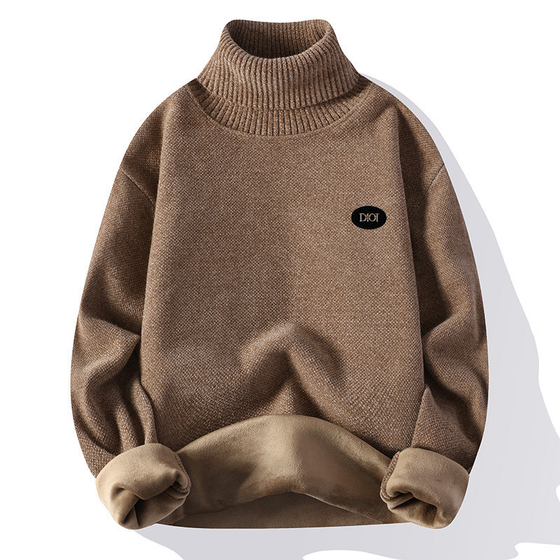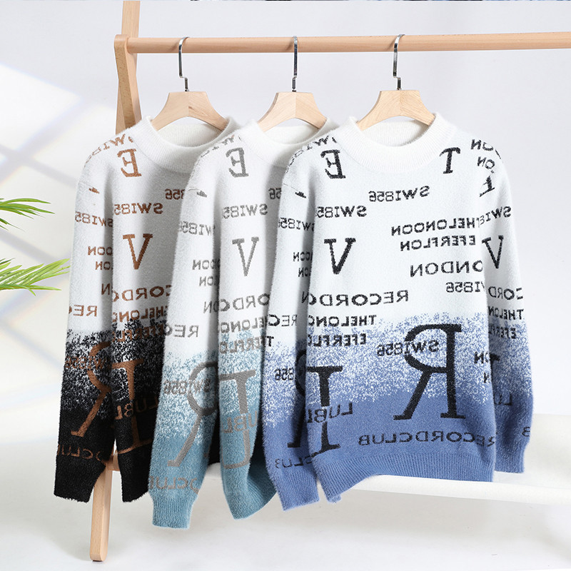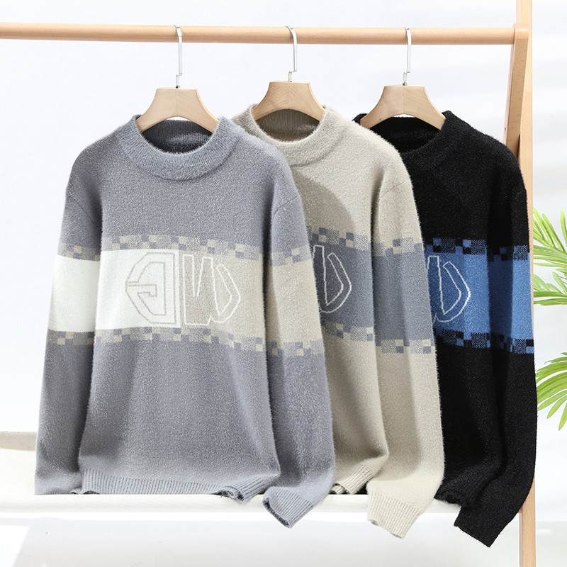 2024秋冬男性高襟セーター冬には、革のロゴを厚くしたベルベットがミンクの毛を模した保温ニット1016
