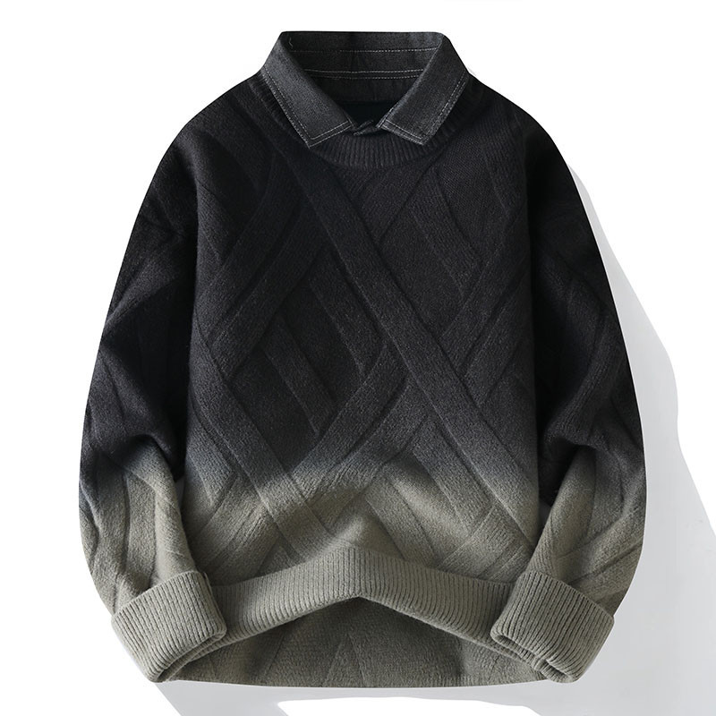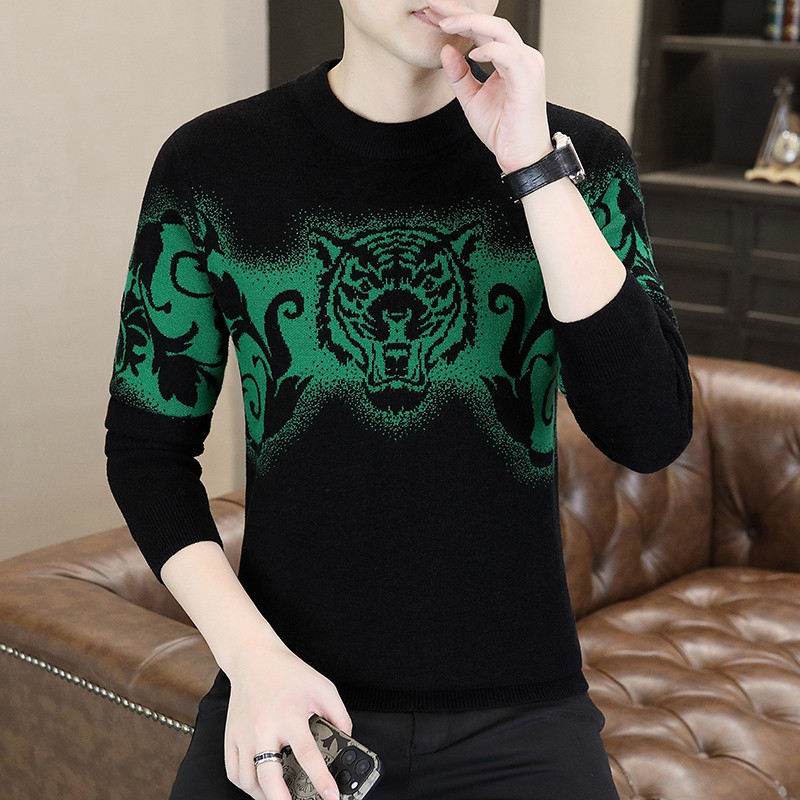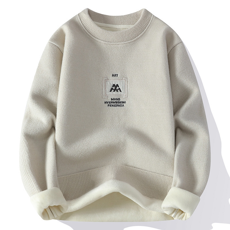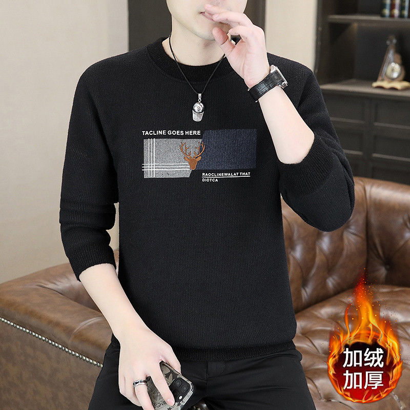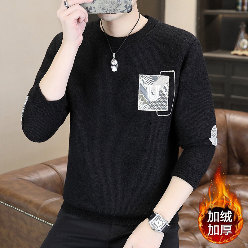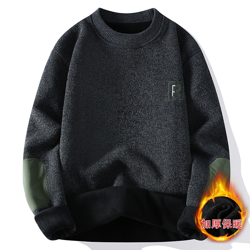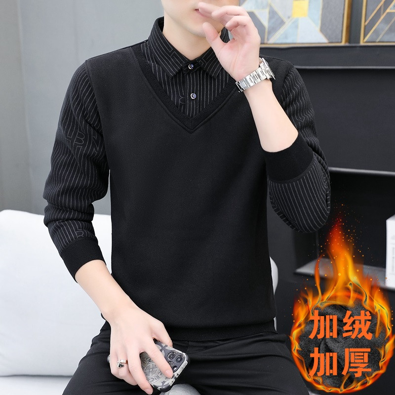 2024秋冬冬にベルベットを厚くして偽のニット青少年男性ファッションカジュアルな丸襟毛1015