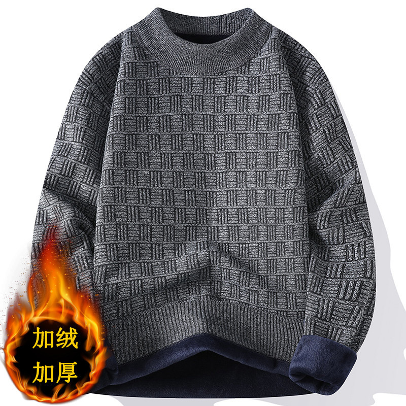 2024秋冬の新型純色一体パイル半高襟シェニールセーターメンズとベルベットの厚い保暖冬1015