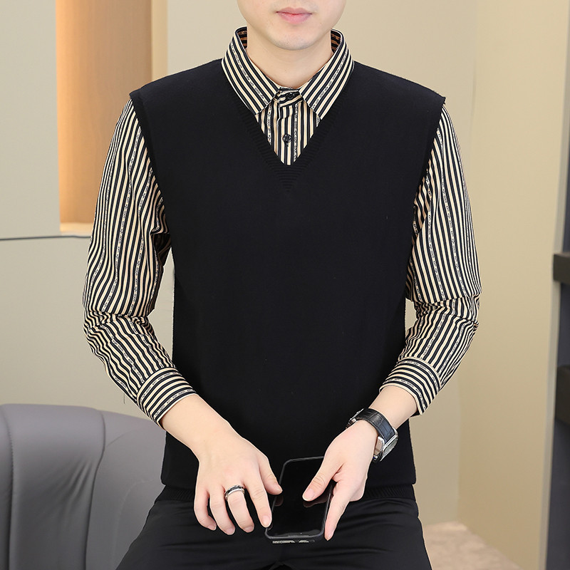 2024秋冬の新型秋冬の偽の2つのセーターの男性のシャツの襟のニットの底のシャツの1015