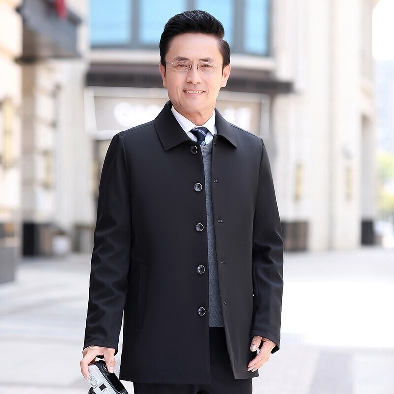2025中年男性ジャケットゆるいカジュアル春秋服中高年お父さんコート単列ボタンナス0108
