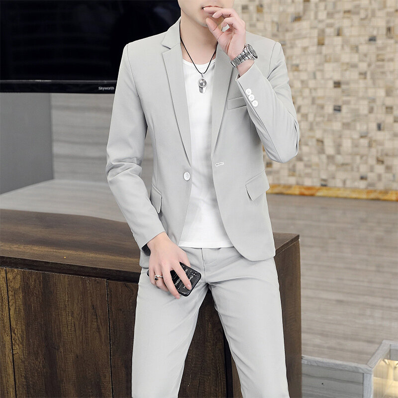 2025[] ファッションカジュアル男性スーツセット春夏韓国版修身スーツ0108