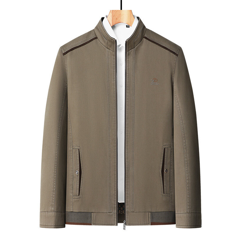 2025新型中高年男性春秋綿お父さん服立襟ジャケットカジュアル水洗綿0108