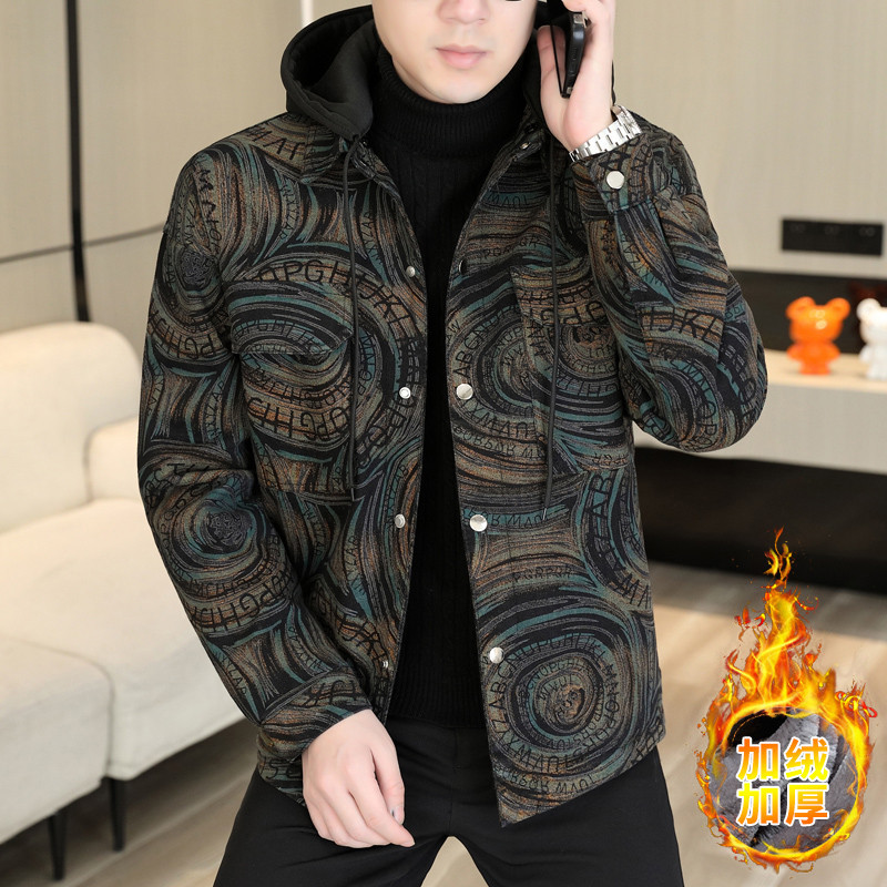 2024秋冬男性モデル韓国版韓城冬ベルベット保温ジャケット男性服襟ファッションショートコート