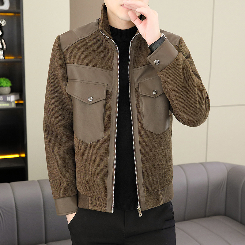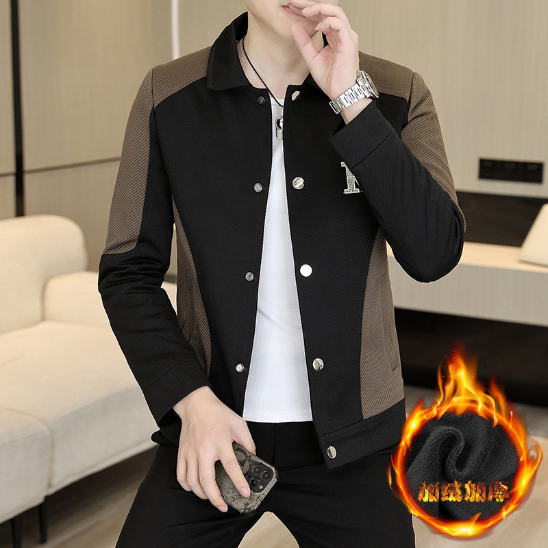 2024秋冬男性モデル韓国版秋冬高品質男性ベルベットジャケット-
