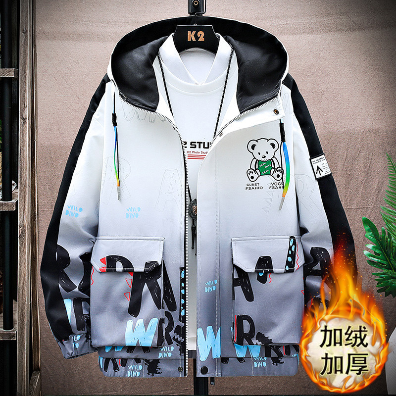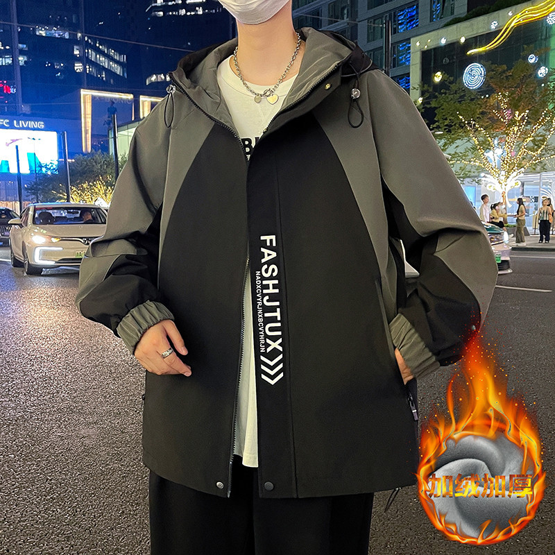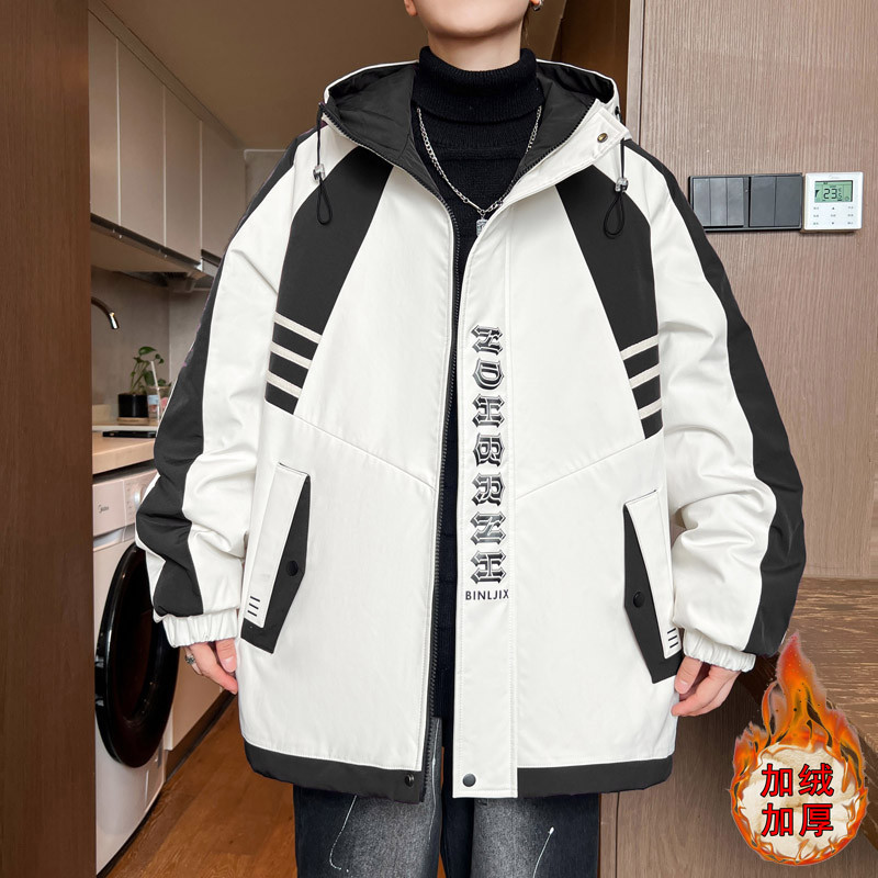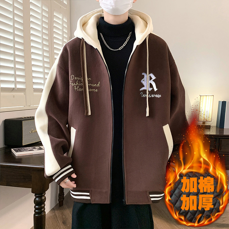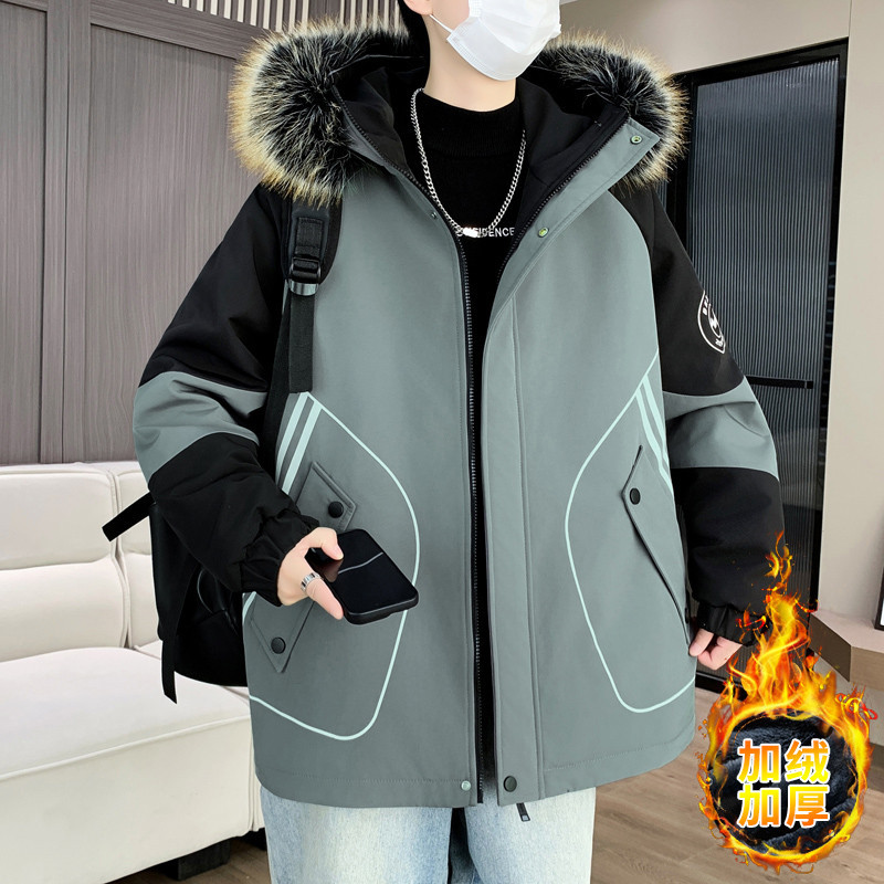 2024秋冬男性モデル韓国版秋冬モデル青少年ジャケットとベルベットファッション保温-佳楽図