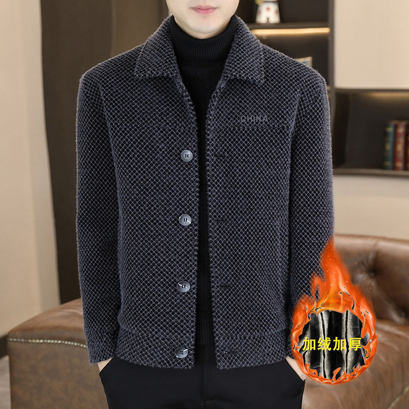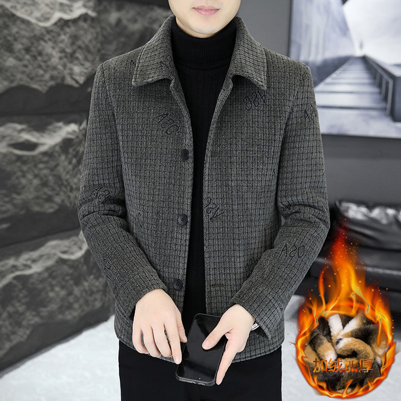 2024秋冬男性モデル韓国版ベルベット厚手男性ジャケット男性ボタン中年襟お父さん服コート男性