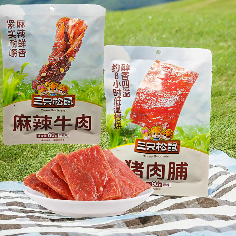 三匹のリスの豚肉の干し肉の60gの辛い牛肉の食感の新鮮な香ばしい原は品質のハロゲン味を切って十分においしいです。