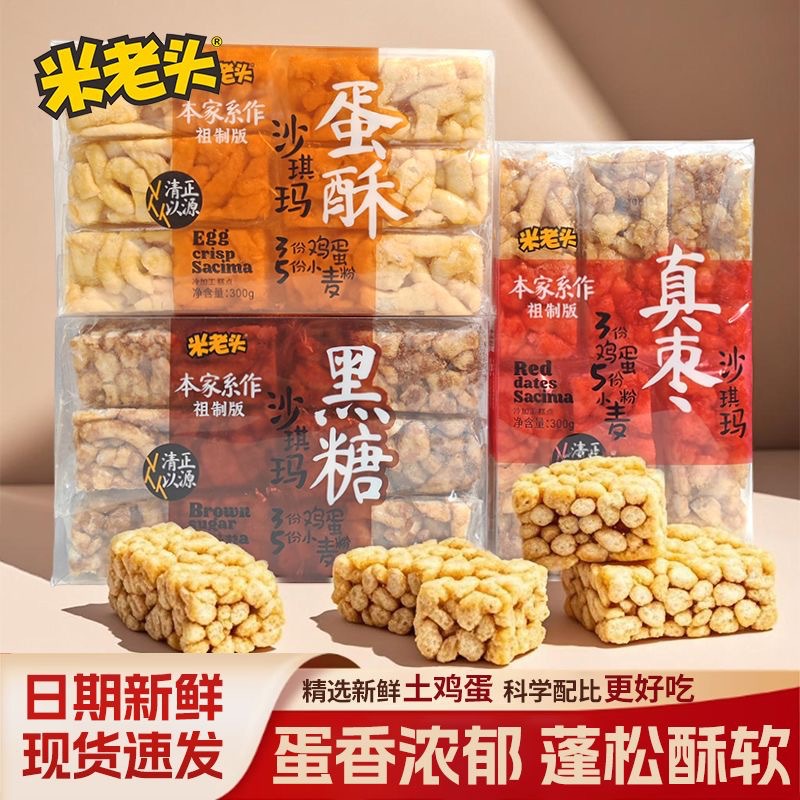 お米の老人は本当にナツメの黒糖の卵のシャキーマの300gの箱のお菓子の事務のレジャー食品の箱の中で郵送します。