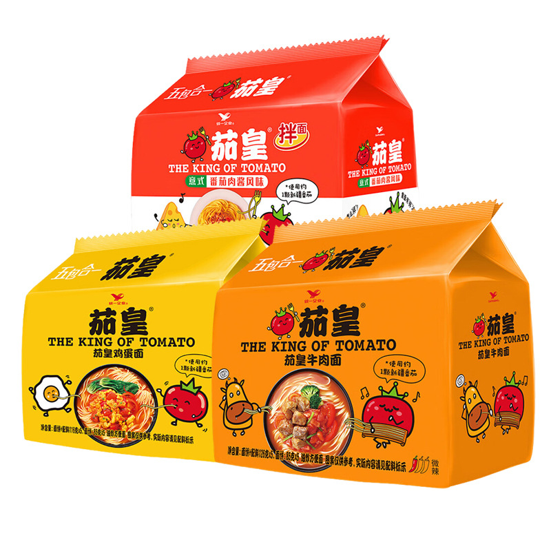 統一ナス皇トマトの卵麺に牛肉トマトの泡麺を入れてインスタントラーメンを袋に入れます。