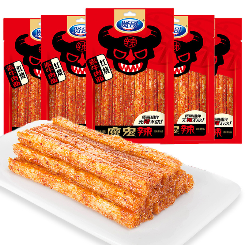 賢兄辛条悪魔辛105gネット赤鶏汁棒間食麻辛軽食子供の頃悪魔辛素牛肉グルテン